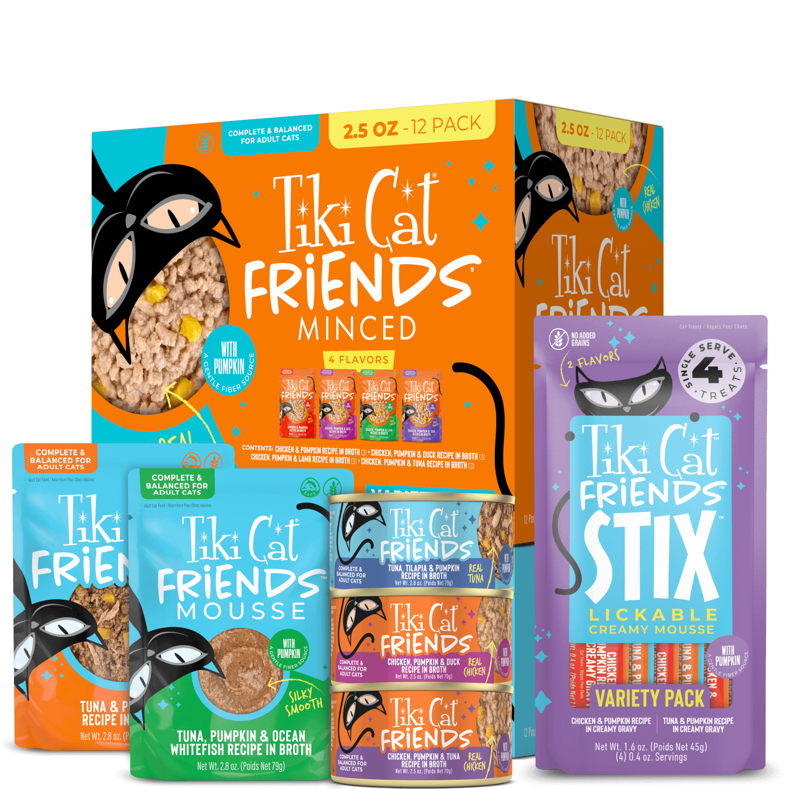 Silky-smooth, meaty treats featuring real chicken or tuna and digestive-friendly pumpkin.