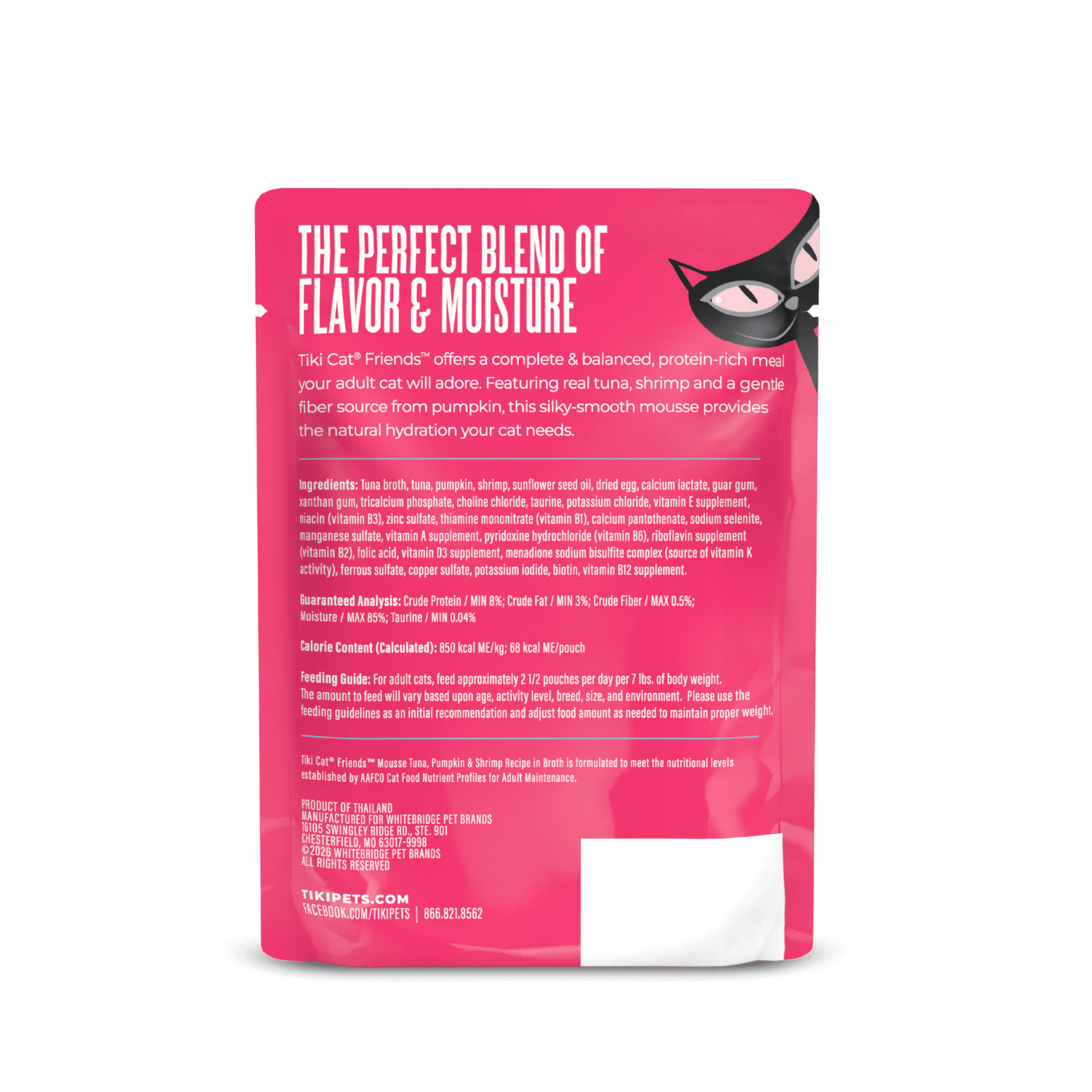 850 kcal ME/kg; 68 kcal ME/pouch
